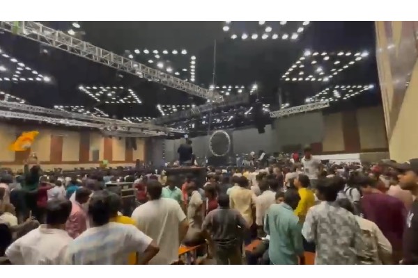 A grand pre-release event of NTR’s Devara is planned in Novotel in Madhapur considering the climate. A heap of fans rushed to the venue and the makers, organizers could not accommodate the fans and control them. The Hyderabad cops rushed to the spot and they lost the control of the venue. The fans reached all the seats of VIP and MIP which are reserved for the celebrities. Despite requests from the organizers and the makers, fans did not compromise and the makers decided to call off the event as they could not accommodate the number of fans who reached the venue. The film’s Telugu distributor S Naga Vamsi along with Trivikram and S Radha Krishna returned back from the venue.