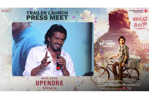 Real Star Upendra is playing a prominent role in Energetic Star Ram Pothineni’s Andhra King Taluka. The team have unveiled Telugu Trailer of the movie at Kurnool with a spell-binding drone show. The trailer is receiving huge positive reception and now, the movie team have unveiled Kannada Trailer in Bengaluru.