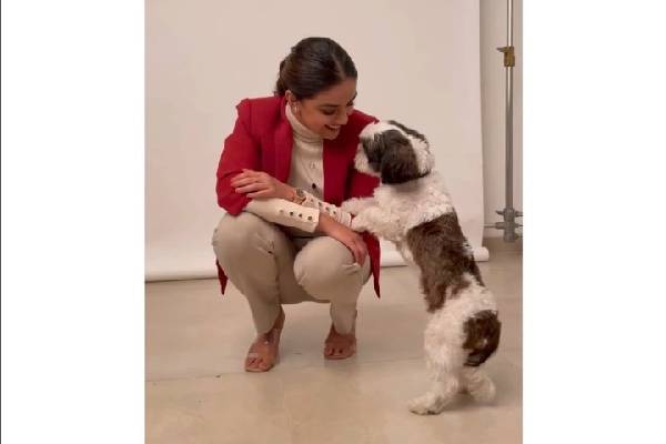 Southern star Keerthy Suresh has shared a glimpse of her first shoot of the year. In a string of pictures she shared on Instagram, Keerthy is seen posing with her pet dog Nyke.