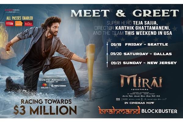 Fans can meet Super Hero Teja Sajja, Director Karthik Ghattamaneni, and the team this weekend in Seattle, Dallas & New Jersey.