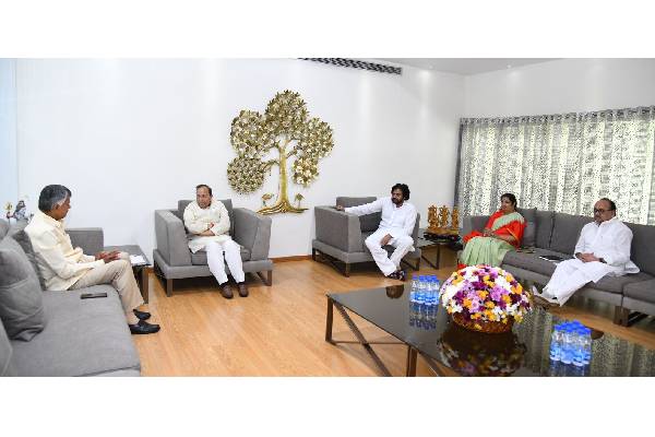 President of the State unit of the BJP, Purandheswari, Jana Sena chief, Pawan Kalyan, the BJP national general secretary, Arun Singh and the BJP State incharge, Sidhartha Singh, had detailed deliberations with TDP supremo, Nara Chandrababu Naidu, how to move forward in these elections in close coordination of the activists of all the three parties. All these leaders had a lengthy meeting with Chandrababu Naidu at his residence at Undavalli in Amaravati.