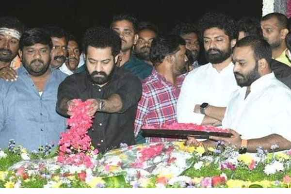 Today marks the 27th death anniversary of legendary actor and politician Sri Nandamuri Taraka Rama Rao. His family members offered their tributes to the legendary actor at NTR Ghat, Hyderabad. Young Tiger NTR and his brother Kalyanram visited NTR Ghat early this morning. They paid their floral tributes to their grandfather. NTR fans reached the premises in huge numbers and raised slogans of NTR as the Future Chief Minister. NTR was not comfortable with the slogans made.
