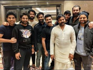 Megastar Chiranjeevi hosted a lavish Sankranthi party in his residence and every Mega Hero attended the grand bash. Ram Charan posted the picture on his official Instagram handle. Chiranjeevi, Ram Charan, Allu Arjun, Varun Tej, Sai Dharam Tej, Allu Sirish, Kalyaan Dhev and Vaishnav Tej. The special guest of the evening happened to be Akira, the son of Powerstar Pawan Kalyan. While most of them have been spotted in black, Chiranjeevi was clicked on traditional attire. Every hero took a break for Sankranthi and spent quality time together.