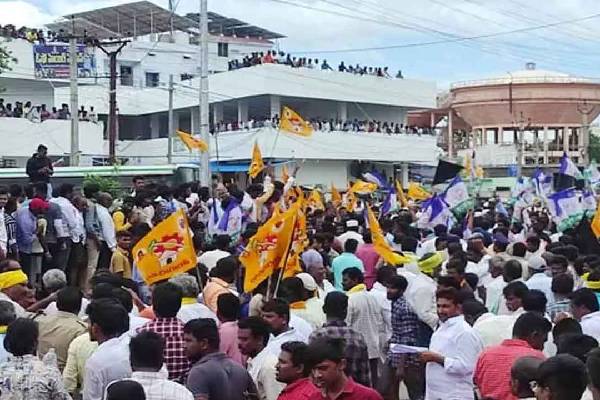 It all started with the TDP activists taking out a protest rally in the town demanding withdrawal of cases against former MLA G V Anjaneyulu. As the rally reached the bus stand area, local MLA, Bolla Brahmanaidu, reached the area, got down from his vehicle and threw an open challenge to the TDP leaders.