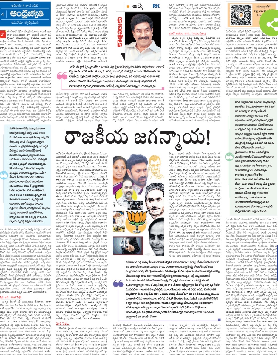 ఎలా చూసినా ప్రస్తుతానికి కేజ్రీవాల్ పై ఉన్న ఆధారాల కంటే… కవితపై ఉన్న ఆధారాలే ఎక్కువ. ఒక వేళ కవితను సైడ్ చేసేసి.. కేజ్రీవాల్ ను మాత్రమే ఇరికించాలనుకుంటే కేసు బలహీనం అయిపోతుంది. అప్పుడు అందర్నీ వదిలిసినట్లవుతుంది. బీజేపీ . కేసులతో రాజకీయం చేస్తుదంన్నది మాత్రం కళ్ల ముందు కనిపించే నిజం. అయితే ఇక్కడ ట్విస్ట్ ఏమిటంటే… ఆర్కే… కవితను అరెస్ట్ చేయకపోతే ఈ కథనం నిజం అని చెప్పుకొచ్చారు. బహుశా… ఆయన టార్గెట్ కవితను కూడా వదిలి పెట్టకూడదని.. .అందుకే ఇలా రాశారన్న అభిప్రాయం సహజంగానే వస్తుంది.