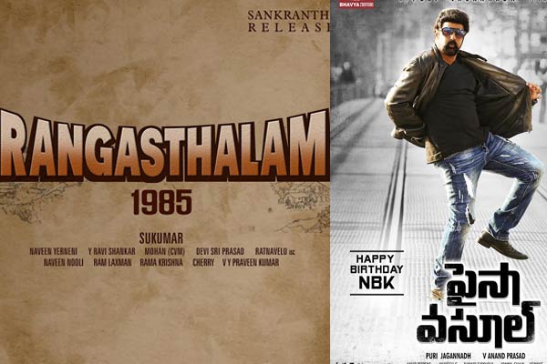శుక్రవారం కొత్త సినిమా కబుర్లతో బిజీగా ఉన్న టాలీవుడ్కి కొత్త టైటిళ్లు కిక్ ఇచ్చాయి. ఒక్క రోజులోనే రెండు సినిమాల టైటిళ్లు ఫిక్సయ్యాయి. బాలకృష్ణ – పూరి జగన్నాథ్ల సినిమా కోసం `పైసా వసూల్` అనే టైటిల్ ఖరారు చేశారు. రామ్చరణ్ – సుకుమార్ల సినిమా కోసం `రంగస్థలం 1985` అనే టైటిల్ ఫిక్స్ చేశారు. బాలయ్య, చరణ్ల సినిమాలకు సంబంధించిన టైటిళ్ల కోసం అభిమానులు ఎంతో ఆసక్తిగా ఎదురుచూశారు. రకరకాల పేర్లు చర్చలకొచ్చాయి. బాలయ్య కోసం జై బాలయ్య, ఉస్తాద్, తేడా సింగ్ పేర్లు పరిశీలిస్తున్నారని చెప్పుకొన్నారు. జై బాలయ్య టైటిల్ దాదాపు ఖరారు అయిపోయిందనుకొన్నారు. పైసా వసూల్ అనే పేరు అసలు ఎవరూ వినలేదు కూడా. చివరి నిమిషంలో ఈ టైటిల్ బయటకు వచ్చింది. దాన్నే బాలయ్య ఖరారు చేసి షాక్ ఇచ్చాడు.