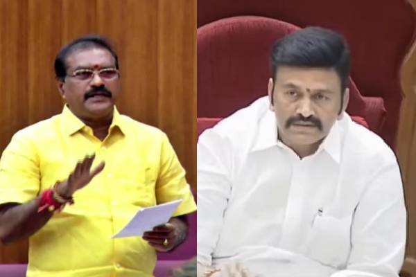 అసెంబ్లీలో అప్పుడప్పుడూ కొన్ని విచిత్రాలు జరుగుతూ ఉంటాయి. అలాంటి శుక్రవారం ఒకటి జరిగింది. రఘురామకృష్ణరాజు మంత్రి నిమ్మలను సభకు రావొద్దని రూలింగ్ ఇచ్చారు. దీంతో అందరూ ఆశ్చర్యపోయారు. స్పీకర్ చెయిర్లో ఉన్న రఘురామ..నీటిపారుదల శాఖకు చెందిన ఓ ప్రశ్నకు సంబంధించి మంత్రిని ఆన్సర్ చేయమన్నారు. మంత్రి నిమ్మల పొడిపొడిగా సమాధానం ఇచ్చి కూర్చున్నారు. రఘురామ వెంటనే తామరాకు మీద నీటి బొట్టులా సమాధానం చెప్పారని సెటైర్ వేశారు.