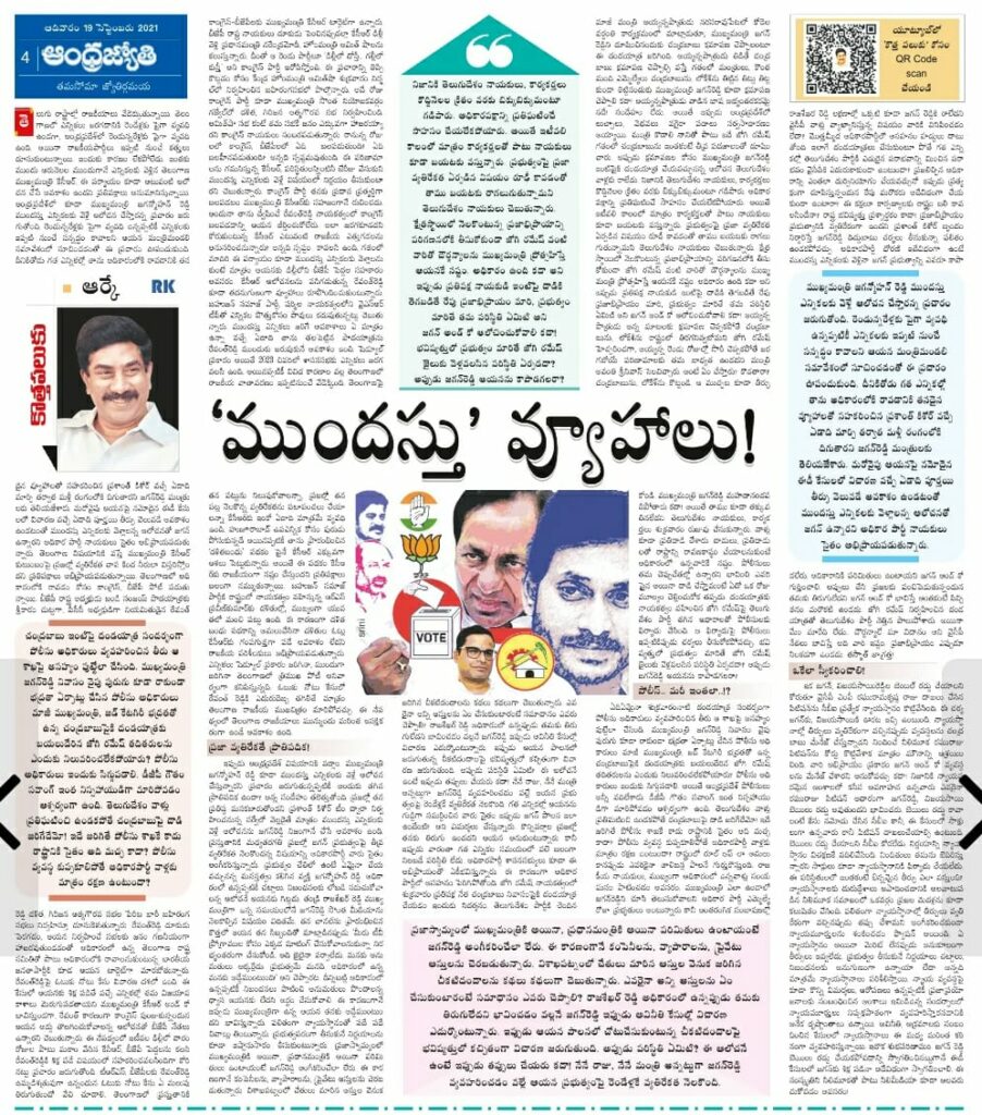 ఇక ఈ వారం ఏపీ రాజకీయాలకూ తగినంత ప్రాధాన్యం కల్పించారు. ఇటీవలి కాలంలో సీఎం జగన్పై ప్రజా వ్యతిరేకత పెరిగిపోతోందని చెప్పడానికి ప్రతి వారం కొంత సమయం కేటాయిస్తున్నారు. మధ్యతరగతి జీవుల్లో ప్రభుత్వంపై పట్టరానంత కోపం ఉందని ఆర్కే చెబుతున్నారు. ఈ విషయాన్ని జగన్ కూడా గుర్తించారని అందుకే ఆయనలో పట్టరానంత అసహనం పెరిగిపోతోందన్న అభిప్రాయం వెలిబుచ్చారు. పీకే వస్తాడని జగన్ కేబినెట్ సమావేశంలో మంత్రులతో చేసిన వ్యాఖ్యలను కూడా ఆర్కే మరో రకంగా విశ్లేషించారు. పీకే టీం ప్రజా వ్యతిరేకత ఉందని తేల్చితే జగన్ కూడా ముందస్తుకు వెళ్తారని ఆర్కే నిశ్చితాభిప్రాయం వ్యక్తం చేశారు.
