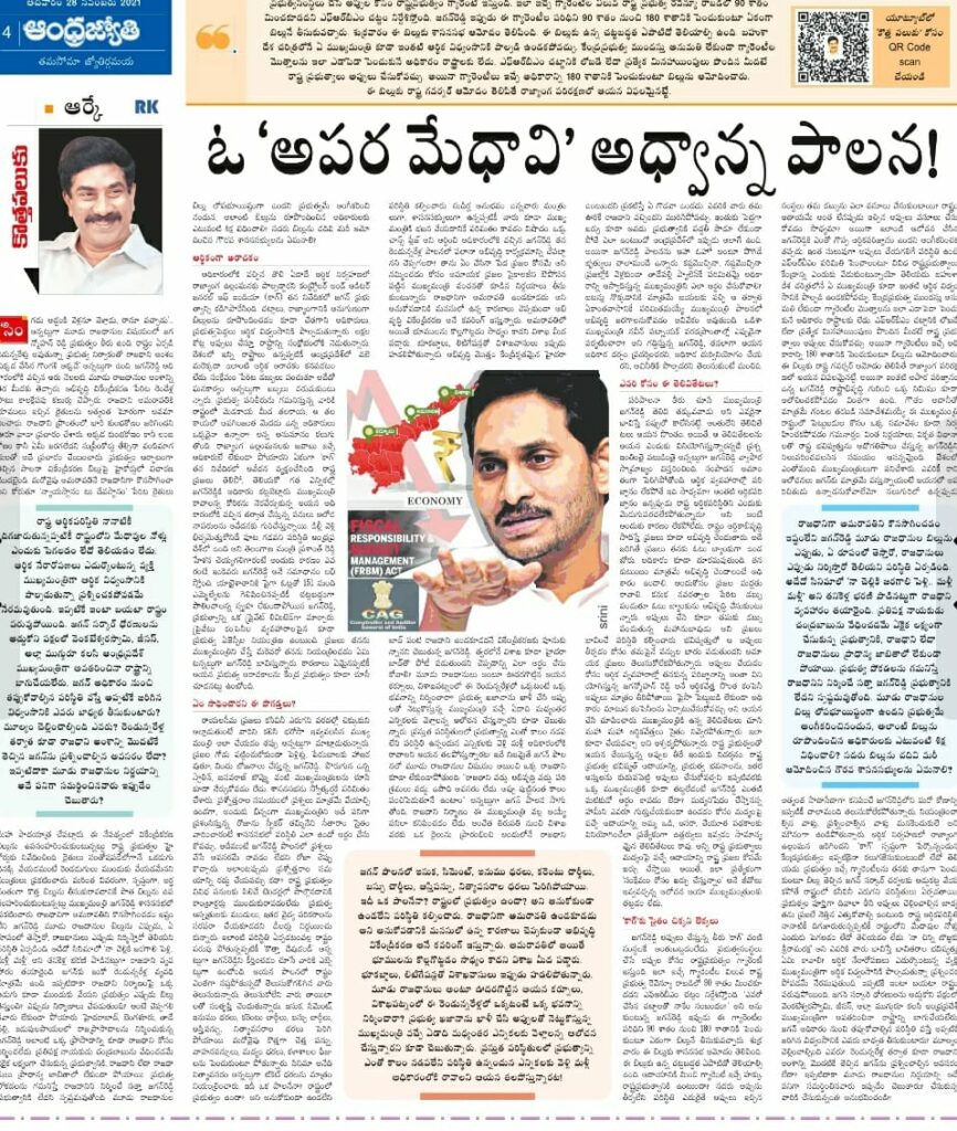 ఈ వారం తన ఆర్టికల్ మొత్తం ఆంధ్రప్రదేశ్ ఆర్థిక పరిస్థితి.. జగన్ నిర్ణయాలతో ఎలా కుదేలయిపోతుందో ఎక్కువగా విశ్లేషించారు. ఉదయం రాజమండ్రిలో ఉండవల్లి అరుణ్ కుమార్ చెప్పిన చాలా విషయాలు ఈ సారి కొత్తపలుకులో కనిపించాయి. అప్పులతో నడిచినంత కాలం నడిపించి.. రాష్ట్రాన్ని దిక్కు లేకుండా వదిలేసి …వెళ్లిపోయే వ్యూహం కనిపిస్తోందని ఆర్కే చెబుతున్నారు. అదే సమయంలో ఇలా చేస్తున్న జగన్ను తెలివి తక్కువ వాడని అనలేమని.. ఆయన వ్యాపారాలు ఎలా అప్పుల్లేకుండా.. రూపాయి పెట్టుబడి లేకుండా వేల కోట్లకు ఎలా చేరాయో కళ్ల ముందు కనిపిస్తూనే ఉన్నాయన్నారు. అదానీతో సొంత వ్యాపారాలపై రెండు, మూడు గంటల పాటు చర్చించగలిగిన ఆయన ఏపీలో పెట్టుబడుల కోసం .. ఒక్క సమావేశం పెట్టలేదని గుర్తు చేశారు.
