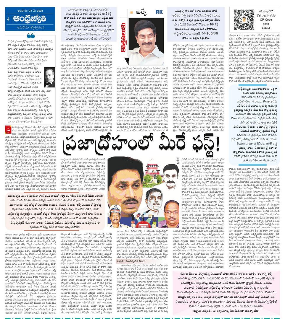 ఆంధ్రజ్యోతి ఎండీ వేమూరి రాధాకృష్ణ.. ఆంధ్రప్రదేశ్ ప్రభుత్వాన్ని.. పగతో రగిలిపోయే ప్రభుత్వ పెద్దలను మరింత రెచ్చగొడుతున్నట్లుగా కనిపిస్తోంది. ఆయన వారంతపు ఆర్టికల్ కొత్తపలుకులో ఈ సారి మరింత ఘాటు పెంచారు. దీనికి కారణం… రఘురామకృష్ణరాజు ప్రెస్మీట్లు ప్రసారం చేసినందుకు తన చానల్పైనా రాజద్రోహం కేసు పెట్టడం ఓ కారణం అయితే… ప్రభుత్వ వైద్యులు రఘురామకృష్ణరాజు గాయాల విషయంలో తప్పుడు నివేదికలు ఇచ్చినట్లుగా ఆధారాలు తన దగ్గర ఉన్నాయని ప్రకటించుకోవడం మరో కారణంగా చెప్పుకోవచ్చు.
