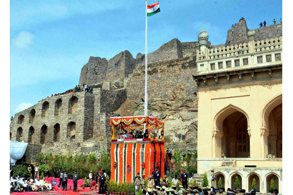 Chief Minister K. Chandrasekhar Rao hoisted the national flag at a colourful ceremony at the historic Golconda Fort here.