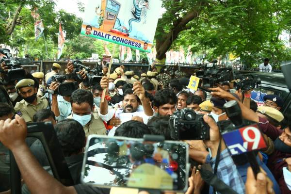 When Revanth Reddy and others removed the police barricades and tried to force their way towards Tank Bund to reach Ambedkar statue, police stopped them. This led to pushing and jostling between the two sides.